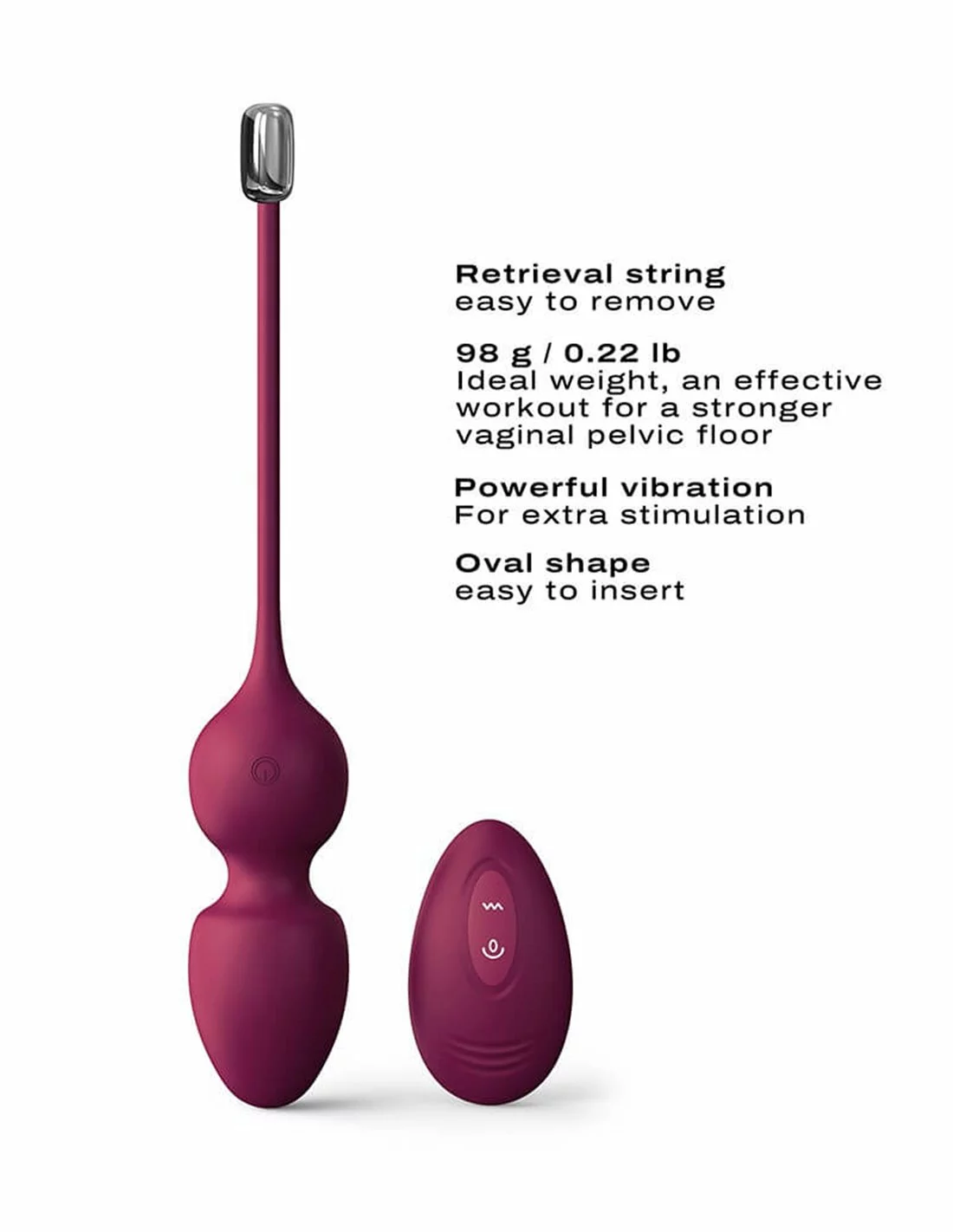 De ovale vorm van de vibrerende ballen zorgt voor een gemakkelijke inbrenging. De afstandsbediening heeft 10 vibratiestanden en 7 automatische bewegingsstanden.