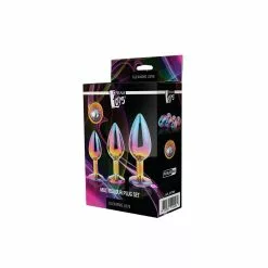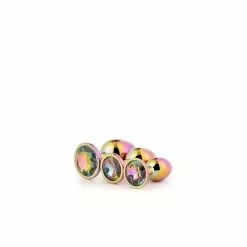 De Gleaming Love collectie presenteert deze set glanzende anaalpluggen in 3 maten, elk met een edelsteen.