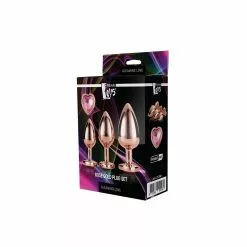 De Gleaming Love collectie presenteert deze set glanzende anaalpluggen in 3 maten, elk met een edelsteen.