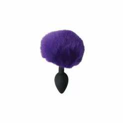 De hals van de buttplug is lang en smal en heeft een paars konijnen staartje aan het einde.